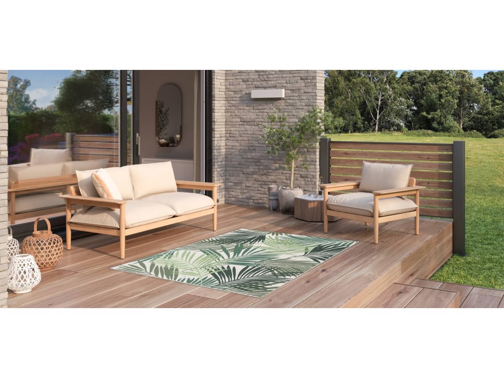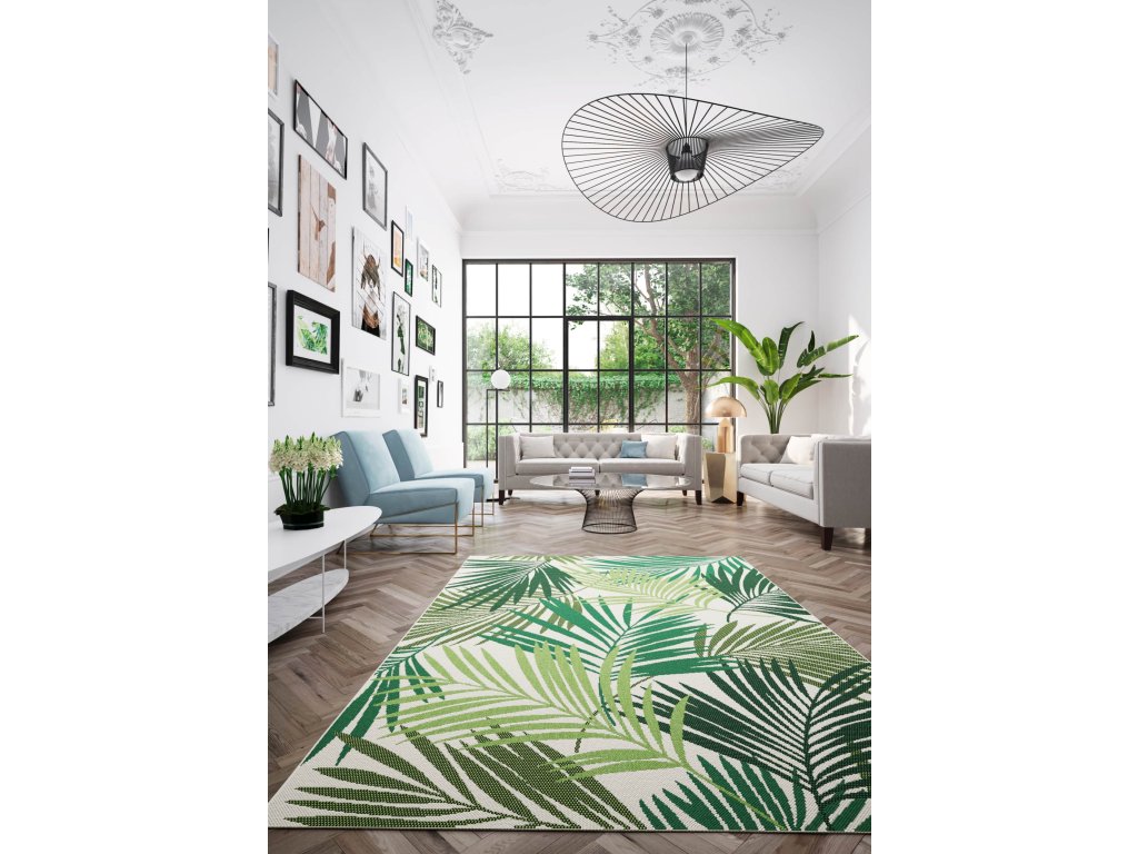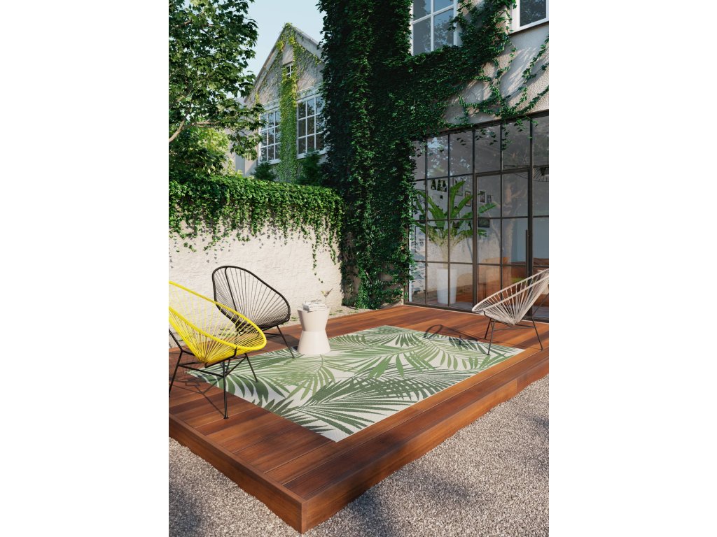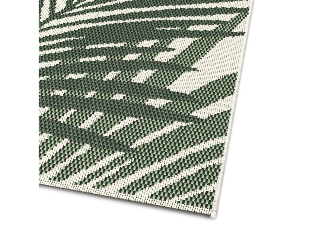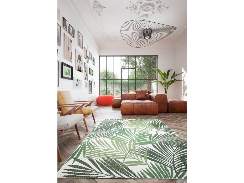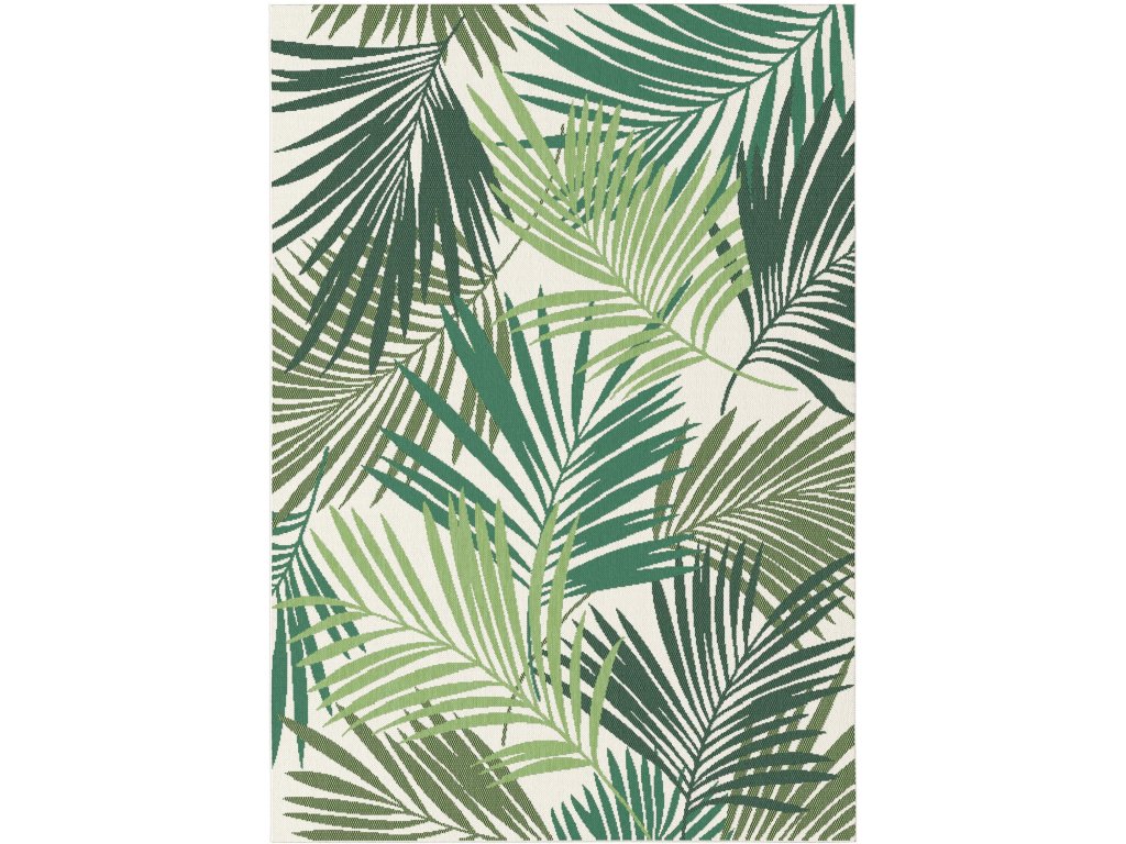 Koberec z řady Star s motivem listů palmy na béžovém podkladu je skvělou volbou pro ty, kteří chtějí do svého interiéru nebo exteriéru vnést přírodní prvek v jemných barvách. Kombinace béžové základní plochy a detailních zelených palmových listů vytváří uklidňující atmosféru, která evokuje pocit spojení s přírodou. Koberec nemá klasický vlas, vlákna jsou pevně součástí jeho struktury, což zajišťuje snadnou údržbu a odolnost. Je ideální pro použití jak uvnitř, tak venku – od obývacích pokojů až po terasy a balkony. Navíc díky ocenění Oeko-Tex je tento koberec šetrný k životnímu prostředí a zdraví.