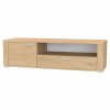 TV stolek s otevřenou policí, dvířky a zásuvkou.