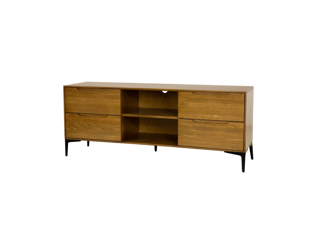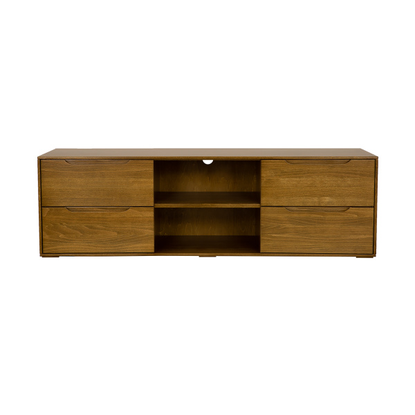 Stolek je vybaven čtyřmi prostornými zásuvkami, které nabízí dostatek místa pro uložení drobných předmětů, dálkových ovladačů nebo příslušenství k TV. Dvě otevřené police jsou ideální pro umístění audio a video techniky, herních konzolí nebo dekorací. Nechybí ani otvory pro kabeláž, které umožňují pohodlné vedení kabelů a zajišťují volné proudění vzduchu.