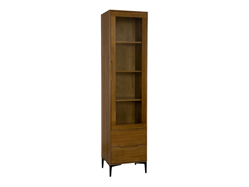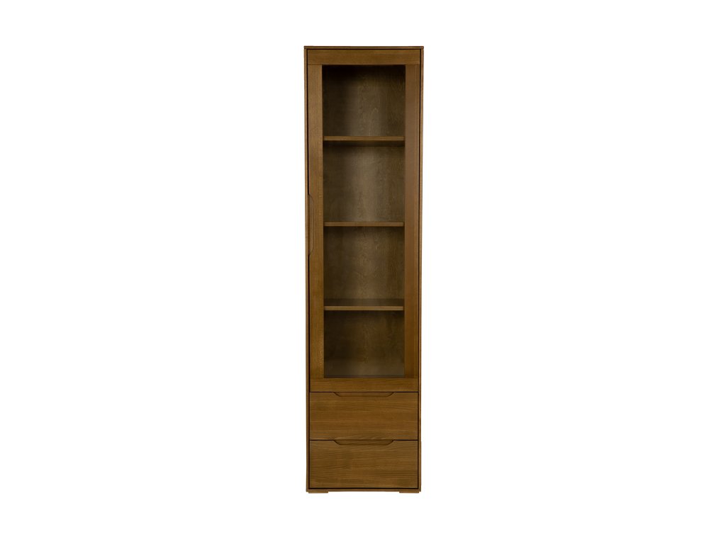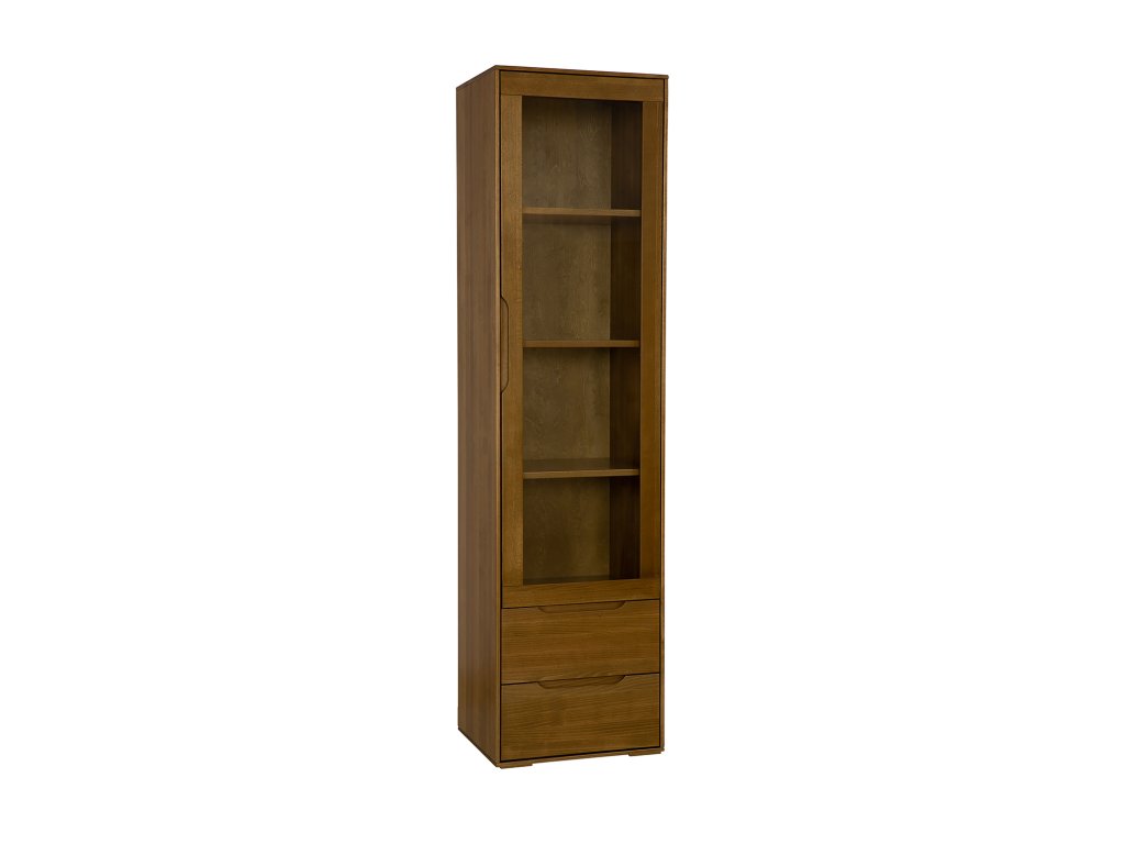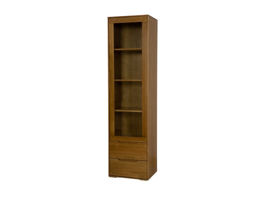 Elegantní vitrína MODERN úzká je ideální volbou pro všechny, kdo preferují minimalistický design v kombinaci s přírodním dřevem. Vyrobena je z masivního bukového dřeva, které vyniká krásnou kresbou a dlouhou životností. Vitrína působí lehce a přitom nabízí dostatek prostoru pro vystavení rodinných fotografií, dekorací či knih. Prosklená dvířka elegantně doplňuje spodní část se dvěma prostornými zásuvkami, které poskytují praktické úložiště pro drobnosti.