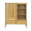 Vitrína RETRO kombinovaná je elegantní kus nábytku, který propojuje masivní dubové dřevo s nadčasovým retro designem. Kombinace prosklených dvířek, otevřených polic a praktických zásuvek vytváří ideální prostor pro vystavení i uložení všech vašich oblíbených věcí.