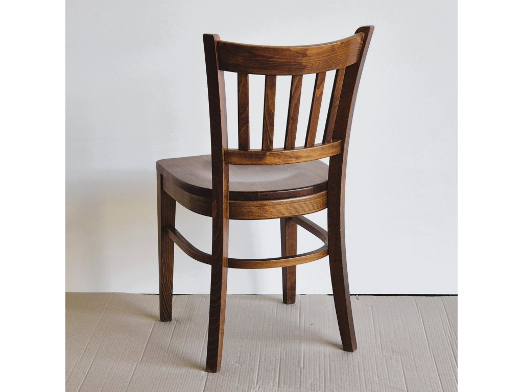 Jídelní židle z masivního dřeva s tvarovaným sedákem a pevným opěradlem s příčkami v klasickém stylu. Robustní konstrukce a precizní řemeslné zpracování zajišťují dlouhou životnost a pohodlí při sezení. Vhodná do tradičně zařízených interiérů, kuchyní i jídelen.