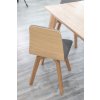 Židli můžeme nechat vyrobit bukovou nebo dubovou, celodřevěnou nebo čalouněnou šedou látkou. Více informací o používaných dřevinách a povrchových úpravách najdete na kartě Vzorník a atypické úpravy.